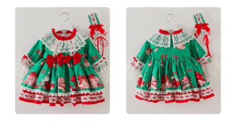 - Christmas Dress, Princess Skirt, Frilled Neckine