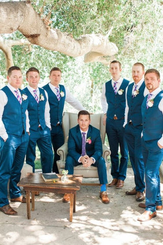 - Vest: V-neck, 5 Buttons, 4 pockets. Same colored satin back unless you request a different one. Adjustable belt at back.