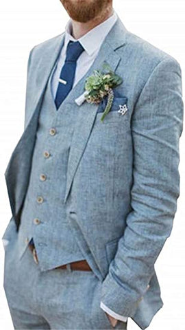 - Vest: V-neck, 6 Buttons, 3 real pockets. Same linen back unless you request a different one. Adjustable belt at back.