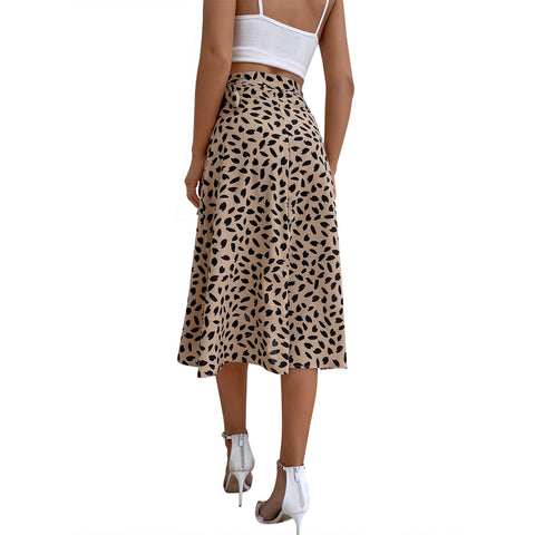 - Polka-dot Print Skirt Long, Slit Skirt, Lace up Skirt